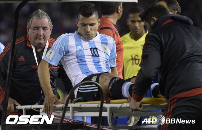 국제축구연맹(FIFA) 매치 데이의 후유증이다. 아게로는 지난 9일 에콰도르와 2018 러시아 월드컵 남미예선 홈경기에 선발 출전했다. 그러나 오래 뛰지 못했다. 아게로는 부상을 당해 전반 24분 만에 카를로스 테베스와 교체됐다.