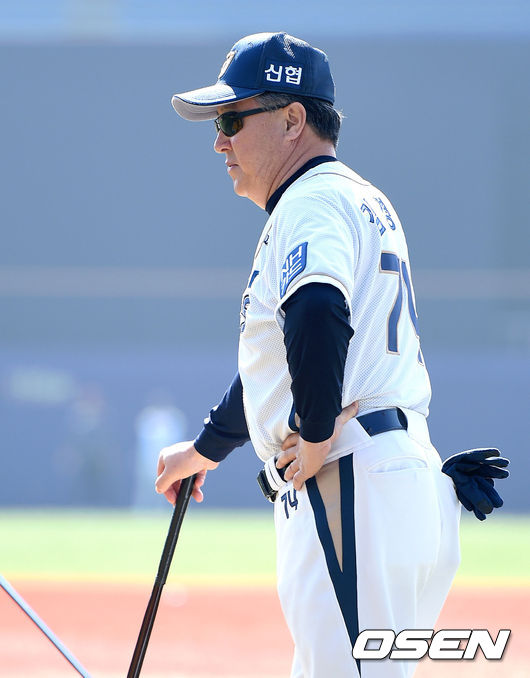 18일 경남 창원 마산야구장에서 열릴 2015 타이어뱅크 KBO리그 포스트시즌 플레이오프 1차전 NC 다이노스와 두산 베어스의 경기에 앞서 NC 김경문 감독이 그라운드를 바라보고 있다.