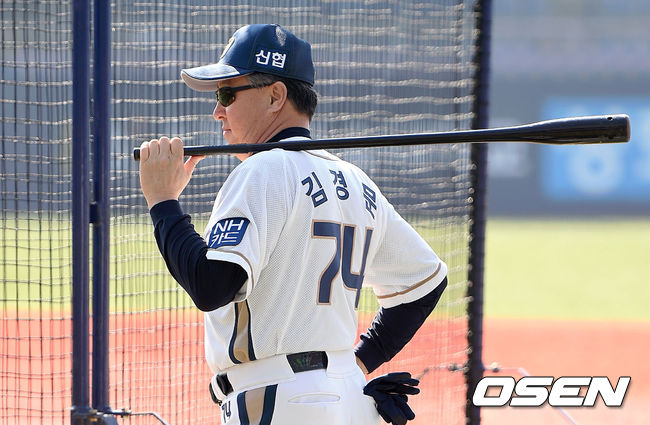 18일 경남 창원 마산야구장에서 열릴 2015 타이어뱅크 KBO리그 포스트시즌 플레이오프 1차전 NC 다이노스와 두산 베어스의 경기에 앞서 NC 김경문 감독이 그라운드를 바라보고 있다.