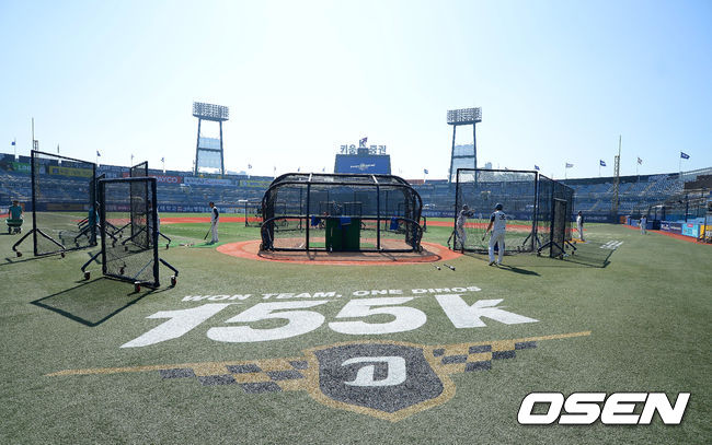 18일 경남 창원 마산야구장에서 열릴 2015 타이어뱅크 KBO리그 포스트시즌 플레이오프 1차전 NC 다이노스와 두산 베어스의 경기에 앞서 양팀이 훈련을 하고 있다.