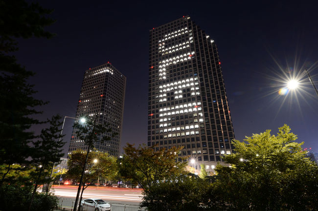LG전자는 이달 21일부터 올 연말까지 주 4회, 밤 9시부터 자정까지 실내의 사무실 조명을 이용해 LG트윈타워 서관 건물 전면에 'OLED' 문자를 형상화해 노출할 계획이다.