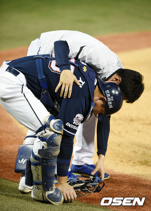 역전패하는 과정 자체도 두산으로서는 아쉬웠지만, 그보다 이후 시리즈 흐름에 더욱 큰 영향을 줄 수 있는 변수가 새롭게 등장했다. 바로 포수 양의지의 부상이다. 양의지는 4회말 나성범 타석에서 파울 타구에 오른발을 맞았고, 5회초 자신의 타석까지 소화한 뒤 5회말 최재훈으로 교체됐다. 오른쪽 엄지발가락 타박상을 입은 그는 X-레이 검진 결과 큰 이상이 나타나지는 않았다.