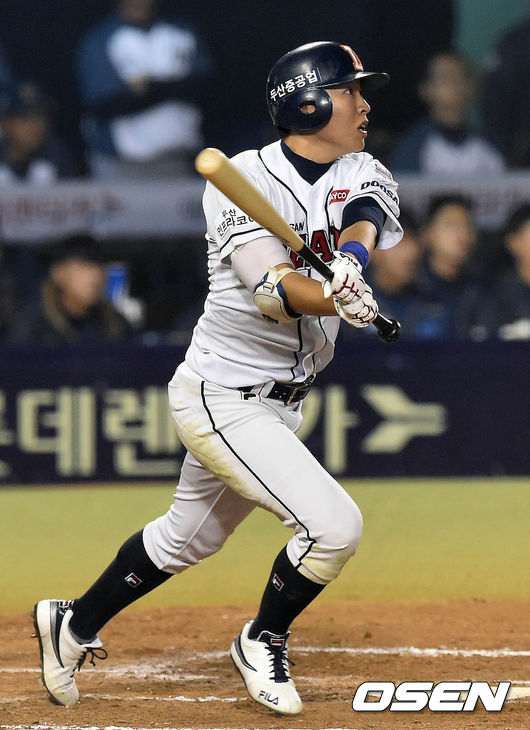 이 3루타로 정수빈은 통산 플레이오프 3개째 3루타로 이 부문 선두로 올라섰다. 종전 기록은 2개로 정수빈을 비록해 7명이 기록 중이었다. /cleanupp@osen.co.kr