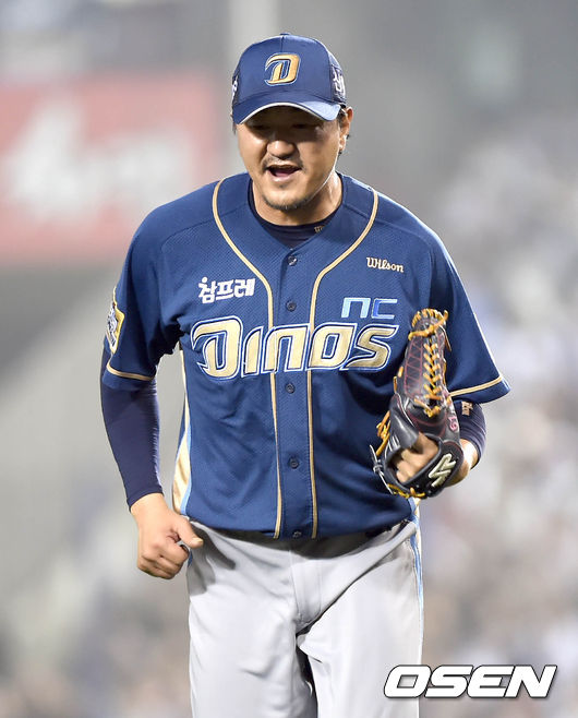 NC 최고참 투수 손민한(40)에게 플레이오프 3차전은 야구 인생 영광의 날 중 하나로 기억될 것이다. 지난 21일 잠실구장에서 열린 두산과 플레이오프 3차전에 선발등판한 손민한은 5이닝 3피안타 3볼넷 1사구 2실점(1자책) 역투로 역대 포스트시즌 최고령(40세9개월19일) 승리투수 역사를 썼다. 개인적으로도 포스트시즌 첫 선발승.