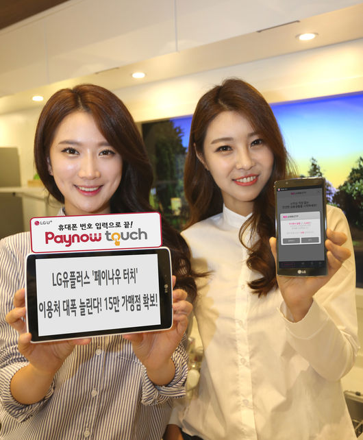 LG유플러스(부회장 이상철/ www.uplus.co.kr)는 휴대폰 번호를 입력만 하면 터치 한번으로 간편하게 결제할 수 있는 오프라인 휴대폰 결제 ‘페이나우 터치(Paynow Touch)’의 이용처 확대를 위한 제휴를 완료, 내년 1분기에는 약 15만 곳에서 ‘페이나우 터치’로 결제를 할 수 있다고 22일 밝혔다.