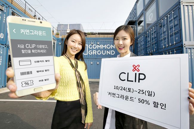 건대입구에 위치한 국내 최대 컨테이너 컴플렉스 ‘커먼그라운드’에서 24, 25일 양일 간 진행되는 ‘커먼그라운드를 CLiP하라’는 ‘클립(CLiP)’ 앱을 다운로드한 후, 쿠폰-브랜드 메뉴에서 ‘커먼그라운드’ 쿠폰을 발급 받으면, ‘마이쿠폰’ 메뉴에서 확인 및 사용 가능하다. 또는, 커먼그라운드에 위치한 사용자라면 클립에서 내 주변 매장의 쿠폰을 발급받을 수 있다. 발급받은 쿠폰은 커먼그라운드의 제휴 매장 이용 시 전 품목 50% 할인 혜택을 받을 수 있다.