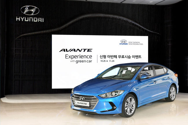 현대자동차(주)는 오는 26일부터 다음달 24일까지 국내대표 카셰어링 업체인 그린카와 연계해 무료로 신형 아반떼를 시승해볼 수 있는 ‘신형 아반떼 무료시승 이벤트(Avante Experience with greencar)’를 운영한다.
