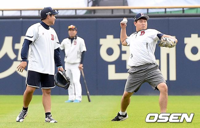 양의지는 21일 플레이오프 3차전에 앞서서 진통제를 맞고라도 뛰겠다는 의사를 전했다. 3차전 도중 최재훈이 노경은의 공을 받는 과정에서 오른쪽 복사뼈를 맞고 절뚝거리는 상황도 있었다. 이 때 홍성흔이 포수 장비를 차며 혹시 모를 상황에 대비했다. 홍성흔은 4차전에 앞서 당시 상황을 떠올리며 “준비하고 있는데 의지가 ‘그런 상황 만들기 싫다’면서 ‘제가 나갈게요’라고 하더라. 책임감이 대단하다”라고 말했다.
