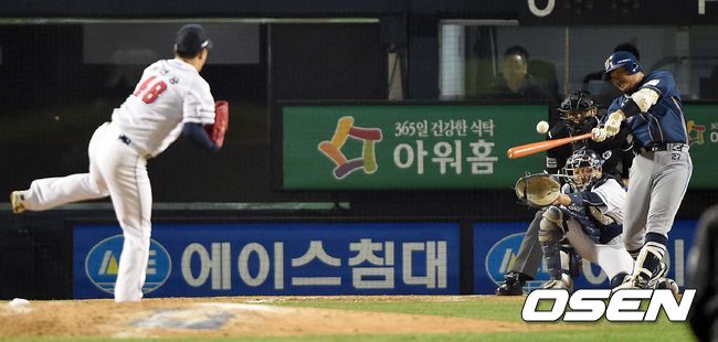 8회초 NC 공격 선두타자로 나선 이호준이 좌전안타를 날리고 있다.