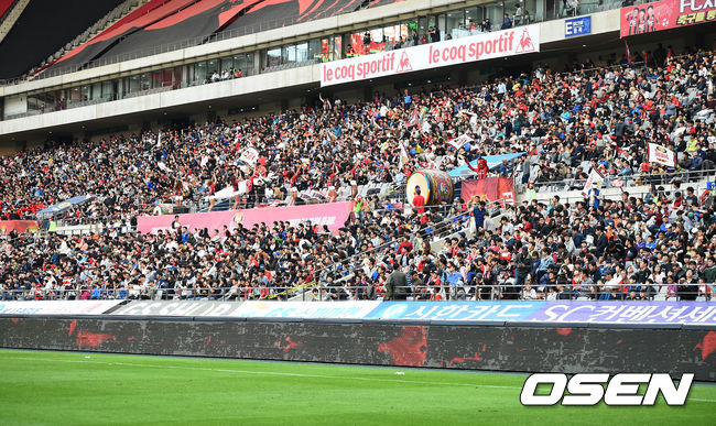 K리그 클래식 18경기에서 30만 2961명을 동원한 서울은 평균 관중 1만 6831명을 기록하며, 전북(평균 1만 6800명, 누적 30만 2396명)을 제치고 평균 및 누적 관중 1위 자리를 탈환했다. 서울은 라이벌 수원 삼성과 홈경기를 남겨 놓고 있어 관중 1위 자리를 안정적으로 유지할 것으로 보인다. /sportsher@osen.co.kr