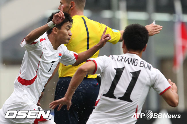치열한 경기를 펼치던 가운데 북한은 후반 추가시간 경기를 뒤집었다. 프리킥 혼전 상황에서 정창범이 극적인 결승골을 뽑아내며 2-1로 짜릿한 승리를 챙겼다. / 10bird@osen.co.kr