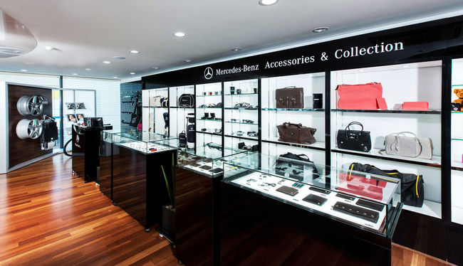 부산 해운대 액세서리&컬렉션 숍은 메르세데스-벤츠 액세서리&컬렉션 샵 중 최대 규모인 47m2이며, 약 200여종의 액세서리&컬렉션 제품을 보유하고 있다.