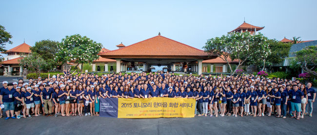 글로벌 코스메틱 브랜드 ‘토니모리’(대표 배해동)는 가맹점주와 본사의 상생과 협력을 다짐하는 ‘2015 토니모리 한마음 화합 세미나’를 지난 10월 21일부터 25일까지 3박 5일간 인도네시아 발리에서 개최했다.