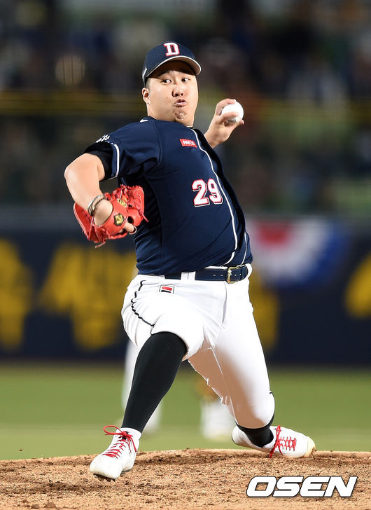 한국시리즈 1차전 선발이라는 중책을 맡은 유희관(29, 두산 베어스)이 타선의 도움 속에 6이닝을 소화해 승리 요건을 갖췄다.