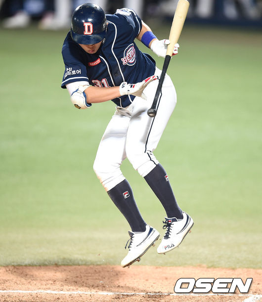 한동안 통증을 호소하며 1루로 걸어나가지 못하고 있던 정수빈은 이내 대주자 장민석으로 교체됐다. 두산 관계자는 "정수빈은 왼쪽 검지에 공을 맞았고, 병원으로 이동해 검진을 받을 예정이다"라고 밝혔다.
