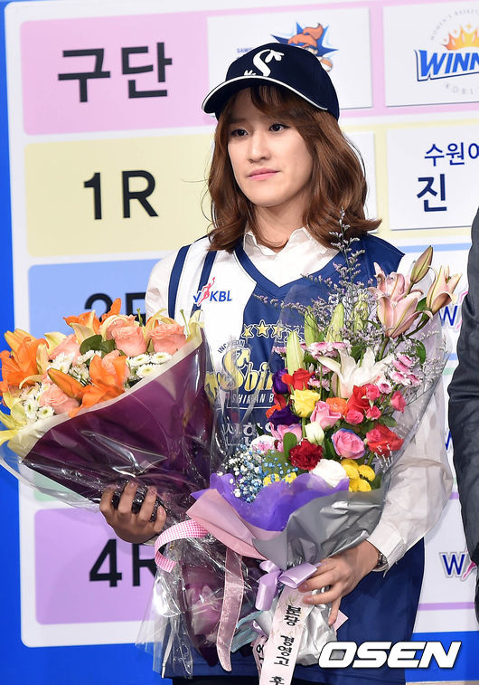 27일 오전 서울 청담동 리베라호텔에서 열린 2016 WKBL 신입선수 선발회에서 2라운드 신한은행에 지명된 이민지가 미소를 짓고 있다.
