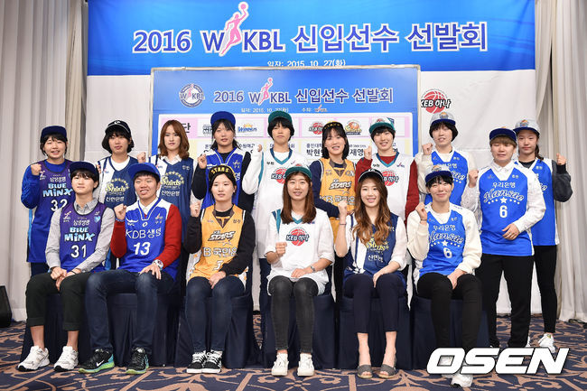 27일 오전 서울 청담동 리베라호텔에서 열린 2016 WKBL 신입선수 선발회에 지명된 선수들이 포토타임을 갖고 있다.