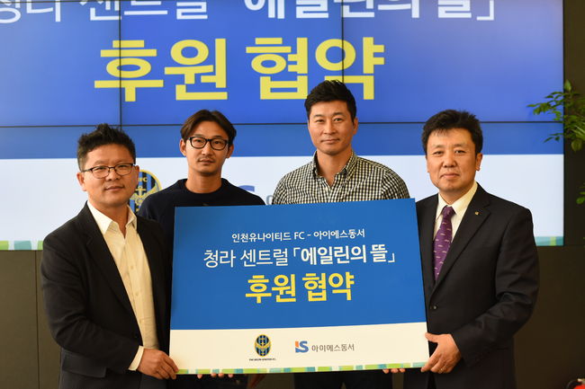 지난 23일 인천유나이티드는 인천광역시 서구 청라국제도시에 위치한 ‘청라 센트럴 에일린의 뜰’ 모델하우스에서 아이에스동서 정경재 개발사업 본부장과 정의석 단장, 김도훈 감독, 이천수가 참석한 가운데 신규 후원 계약을 체결했다.