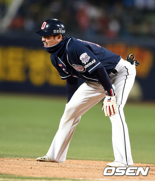 이에 대해 두산 관계자는 "오재원은 주루 플레이 중에 우측 종아리에 불편함을 호소했다. 선수 보호 차원에서 교체했다"고 설명했다. 경기는 8회말이 진행 중이고, 두산이 삼성에 6-0으로 앞서 있다. /nick@osen.co.kr