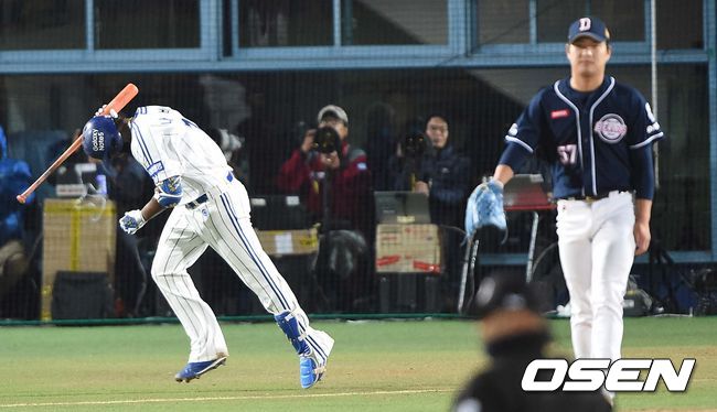 삼성 클린업트리오는 7회까지 니퍼트에게 8타수 무안타 1볼넷으로 꽁꽁 묶였다. 만약 안타를 치지 못한 채 경기가 끝났다면 삼성이 받을 타격이 더욱 컸겠지만, 그나마 9회말 마지막 공격에서 안타를 더하면서 체면을 세웠다. 0-6으로 끌려가던 9회말 최형우는 1사 후 이현호를 상대로 중전안타를 쳤다. 이번 시리즈 첫 안타다. 이어 박석민까지 좌익수 쪽 깊숙한 타구를 날리며 1사 1,3루를 만들었고, 이승엽의 내야땅볼로 삼성은 영패를 면했다. /cleanupp@osen.co.kr
