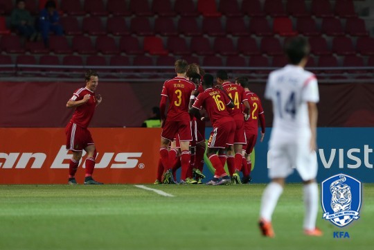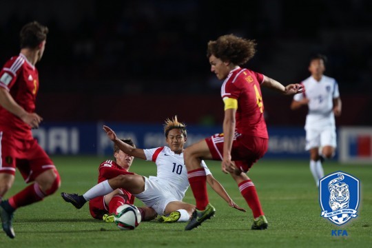 한국이 국제축구연맹(FIFA) 17세 이하(U-17) 월드컵 16강서 벨기에에 완패하며 탈락했다.