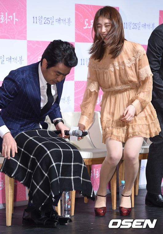 배우 배수지와 류승룡이 29일 오전 서울 신사동 CGV압구정에서 진행된 영화 '도리화가'(감독 이종필) 언론시사회에 참석해 자리에 앉고 있다.