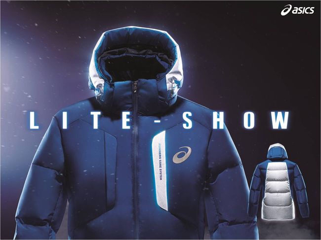 아식스 구스 다운 재킷은 심플한 디자인과 보온성을 두루 갖췄다. 거위털(솜털 깃털 비율 80:20)을 충전재로 사용했으며, 방풍과 보온 기능을 겸비한 윈드 스토퍼 소재를 사용했다. 특히 외부 냉기가 스며드는 목덜미 등 추위를 많이 타는 부분에는 발열 안감을 사용해 평균 30분 이후부터 체온 상승을 유도한다.