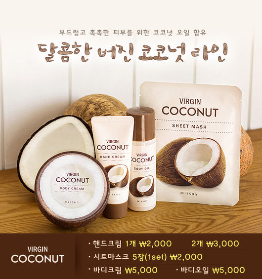 미샤 버진 코코넛 시리즈는 코코넛 오일에 다량 함유된 ‘라우르산’이 피부에 풍부한 영양을 공급하고 유해 환경에 대한 피부 저항력을 높여 주는 점이 장점이다. 모유의 주요 구성 성분이기도 한 라우르산은 영양분의 흡수를 돕고 면역력을 높여주는 것으로 잘 알려져 있다. 바디 크림, 바디 오일, 핸드 크림, 시트 마스크 4품목이 준비됐다.