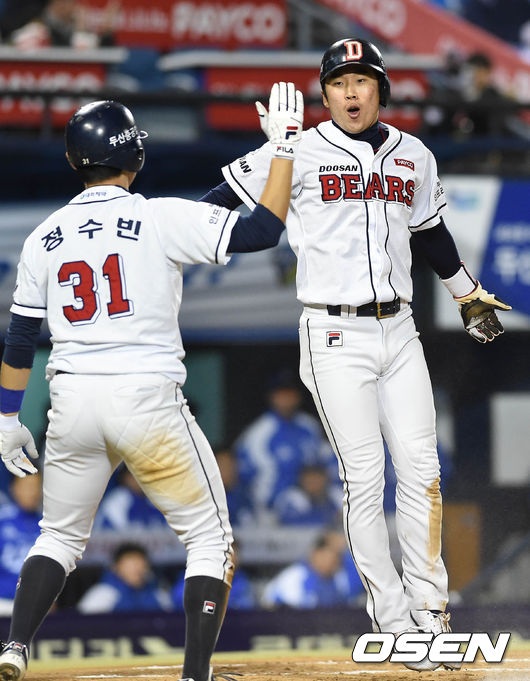 허경민은 “빠른 타구가 와도 홈에 던질 생각이었다. 그만큼 상수의 다리가 빠르기 때문에 실점부터 하지 않아야겠다고 생각했다. 더블플레이는 확신이 서지 않았다”며 “솔직히 홈 송구를 하고 나서 나도 놀랐다. 원래 좀 불안한 자세에서 던질 때 송구가 정확한 경향이 있기는 하다”고 웃었다.