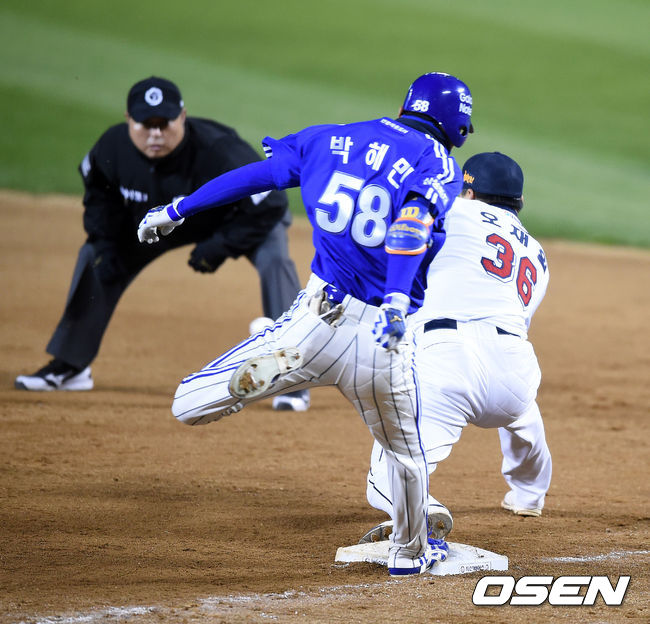 발 빠른 박해민이었기에 홈에서 세이프가 될 수도 있었다. 두산 3루수 허경민이 홈에 정확히 송구를 하긴 했지만, 스킵 동작을 길게 했다가 바로 홈에 파고들면 박해민도 살 수 있었다.