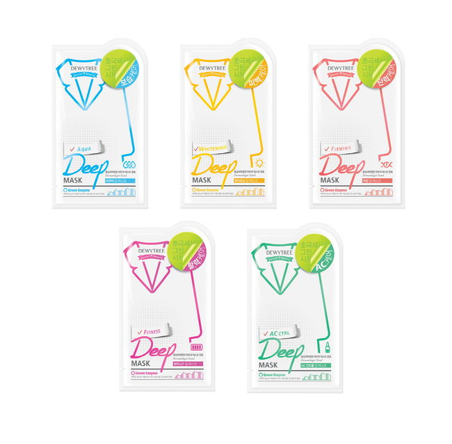 피부 본연의 힘을 키우는 스킨케어 브랜드 듀이트리(http://www.dewytree.com, 대표 문시언)는 밀착력과 유효 성분 흡수 효과를 높인 그린 컬러 시트 마스크 '딥 마스크' 시리즈 5종 (각 27g, 3300원)을 새롭게 출시했다고 밝혔다.