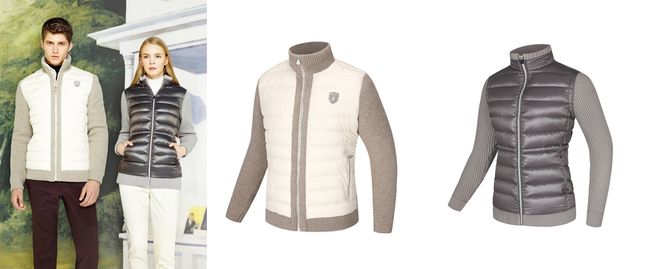 ▲ 헤리토리 골프, 다운 충전재 누빔과 니트 소재 믹스매치해 스타일리시한 '하이브리드 다운재킷'