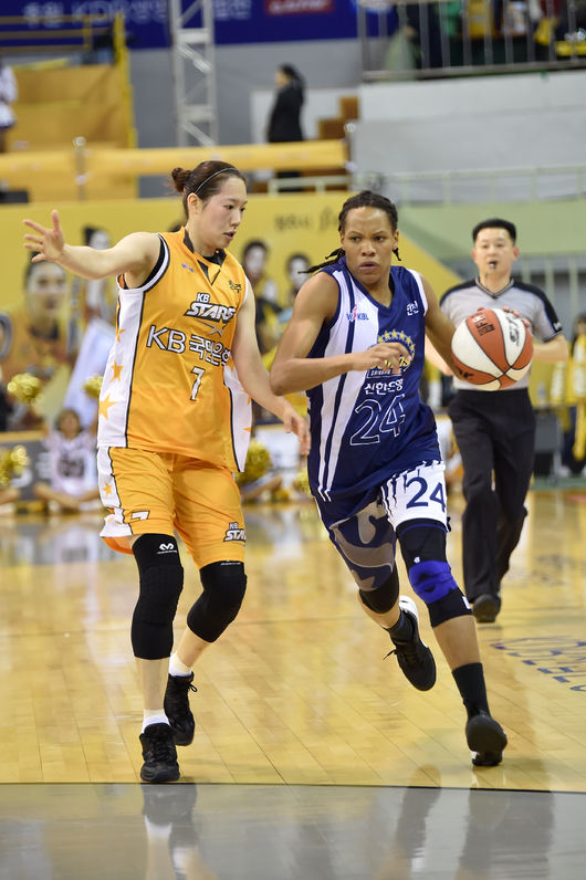두 팀은 시종일관 대접전을 펼쳤다. 승부는 마지막에 갈렸다. 4쿼터 마지막 모니크 커리가 던진 슛이 꽂히며 신한은행이 종료 5초전 역전에 성공했다. KB스타즈의 마지막 공격은 불발됐다.