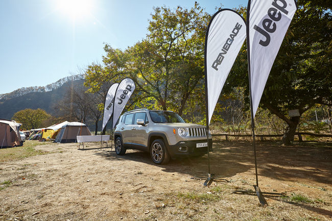 지프가 '2015 아이사랑캠핑'을 협찬하면서 최근 출시된 '올-뉴 레니게이드'를 전시, 참가자들에게 적극적으로 모델을 홍보했다.