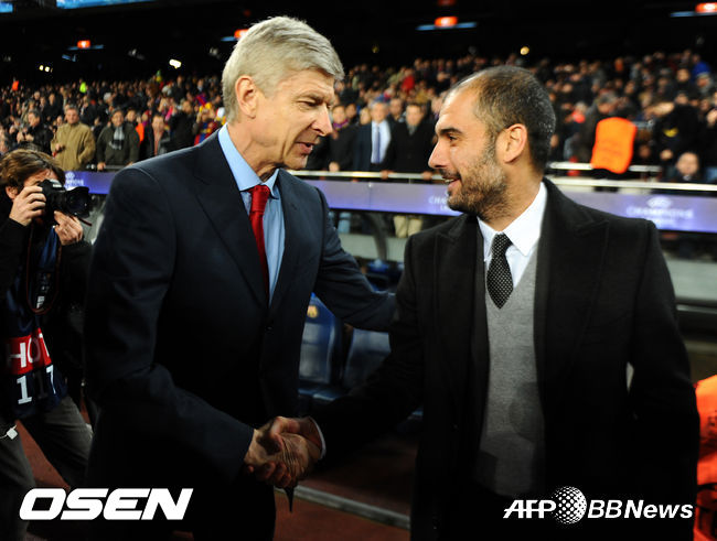 사제 관계가 될 수도 있었던 웽거 감독과 과르디올라 감독은 오는 5일 독일 뮌헨에서 맞대결을 펼친다. 지난달 21일 대결에서는 웽거 감독이 2-0으로 승리하며 선배 지도자로서의 면모를 보인 바 있다. /sportsher@osen.co.kr
