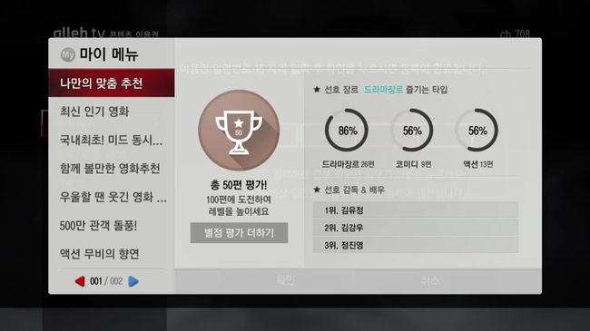 한편 지난 2014년 9월부터 국내최초로 '감성 큐레이션' 서비스를 선보인 이후 추천을 통한 시청이 출시 대비 15배 증가했으며, 감성 추천, 의미기반 검색 등 고사양 셋탑박스의 지능형 서비스를 활용한 시청 비율이 30%이상을 차지하는 등 앞으로 '실시간 감성 큐레이션'과 같은 지능형 서비스를 통한 시청비율은 더욱 늘어날 것으로 전망했다.