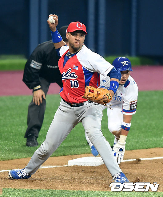 4일 서울 고척스카이돔에서 열린 한국과 쿠바의 '2015 서울 슈퍼시리즈' 1차전. 이번 대표팀에 합류한 '구리엘 3형제' 가운데 율리에스키와 루르데스가 선발 라인업에 등장했다. 그리고 한국 야구팬에게 익숙한 율리에스키 구리엘은 3루수 3번 타자로 중심타선에 배치됐다. 이번 경기에서는 병살타는 안 친 구리엘이지만, 대신 수비실책으로 실점의 빌미를 줬다.