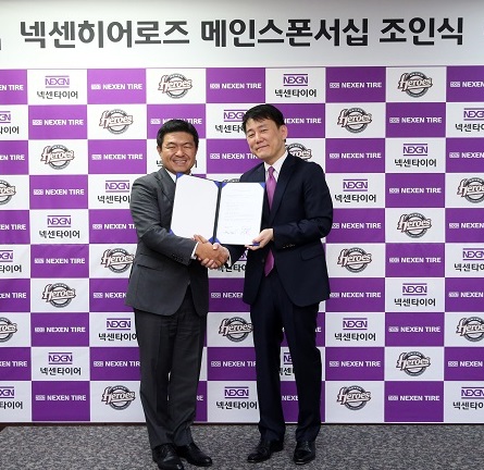 넥센 히어로즈(대표이사 이장석)는 5일 오전 서울 방배동 넥센빌딩에서 넥센타이어(대표이사 이현봉)와 메인스폰서십 연장에 합의, 계약을 체결했다.