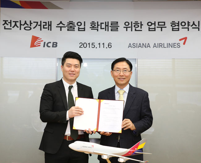 아시아나항공(사장 김수천)이 6일 중국 최대 전자상거래 업체 알리바바의 한국 물류파트너 ICB와 '한중간 전자상거래 활성화를 위한 업무 제휴 협약'(MOU)을 체결했다고 밝혔다.