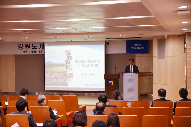 강원도개발공사는 6일 서울 금융투자교육원에서 국내 자산운용사 및 증권사, 금융권을 대상으로 기업설명회를 갖고 평창 알펜시아 매각을 위한 준비상황을 발표했다.