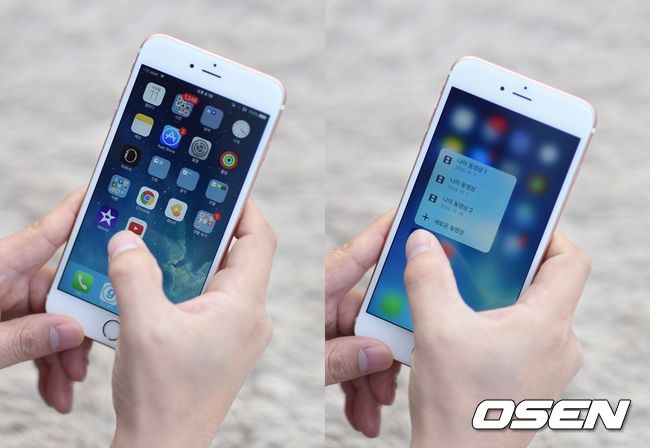 가장 뚜렷한 변화이자 혁신은 '3D 터치'다. "손끝의 힘에 반응한다"는 광고 속 말 그대로다. 사용자의 압력을 감지한다. 때문에 디스플레이를 누르는 세기에 따라 앱이 반응을 한다.