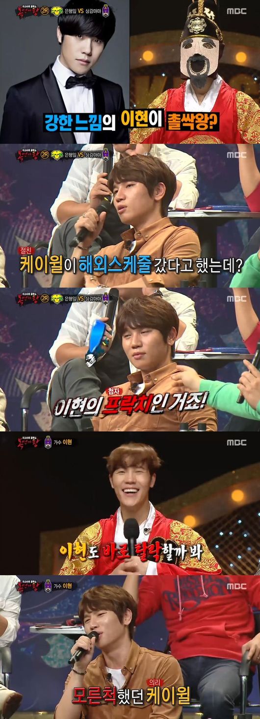 이에 상감마마 정체를 손동운이 '이현 아니냐?'고 추측하자, 케이윌은 적극적으로 나서며 "이현은 지금 중국 일정에 갔다", "에이트 이현을 아는데 실제로는 이렇게 노래를 잘 못한다"고 연신 훼방을 놨다. 김구라만 케이윌을 '프락치'로 의심하며 반발했지만, 결국 상감마마의 정체는 다시 미궁으로 빠져들었다.