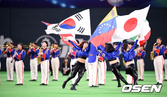 8일 오후 일본 훗카이도 삿포로돔에서 열린 대한민국과 일본의 프리미어12 1라운드 B조 개막전, 경기에 앞서 식전행사가 진행되고 있다.