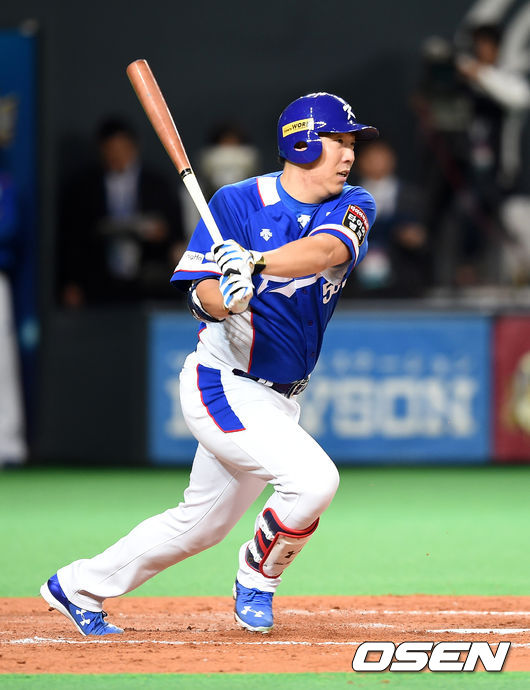 이날 한국 대표팀은 3회까지 오타니에게 꽁꽁 막혀 있었다. 2회 2사 후 손아섭이 볼넷 하나를 얻었을 뿐 아무도 안타를 날리지 못하고 있었다. 김현수는 오타니의 4구째 145km 직구를 받아쳐 우전안타를 때려내며 공격의 물꼬를 텄다. /autumnbb@osen.co.kr