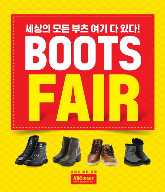 슈즈 멀티 스토어 ABC마트(www.abcmart.co.kr, 대표 이기호)가 가을을 맞아 다양한 신상품과 인기상품을 한자리에서 만날 수 있는 ‘부츠 페어(FAIR)’를 대대적으로 실시한다.