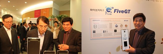 얼굴인식 보안 솔루션 기업 파이브지티(www.fivegt.com, 대표이사 정규택)가 9일 서울 중구 을지로 SK텔레콤 본사에서 열린 브라보 리스타트 성과 발표회에서 3세대 일체형 얼굴인식 유페이스키(Ufacekey, 모델명: GTFR-6000H)를 공개했다.
