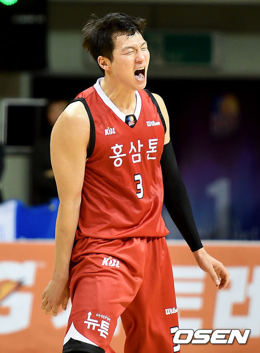 10일 오후 안양실내체육관에서 열린 '2015-2016 KCC 프로농구' 정규리그 안양 KGC와 전주 KCC의 경기, 4쿼터 KGC 이정현이 3점슛을 성공시키며 기뻐하고 있다.