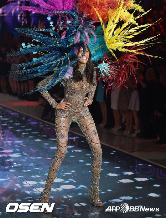 [OSEN=사진팀] 10일(현지시간) 미국 뉴욕 랙싱턴 에비뉴 아모리에서 열린 여성 속옷 브랜드 '빅토리아 시크릿' 패션쇼에서 프랑스 출신 신디 브루나( Cindy Bruna )가 캣 워크를 하고 있다.