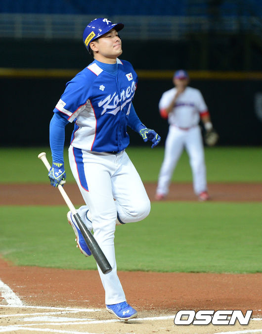 한국 대표팀 외야수 민병헌이 1회부터 부상으로 그라운드를 떠났다.