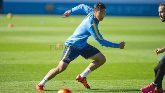 백승호가 다시 바르셀로나 1군에서 훈련을 펼쳤다.